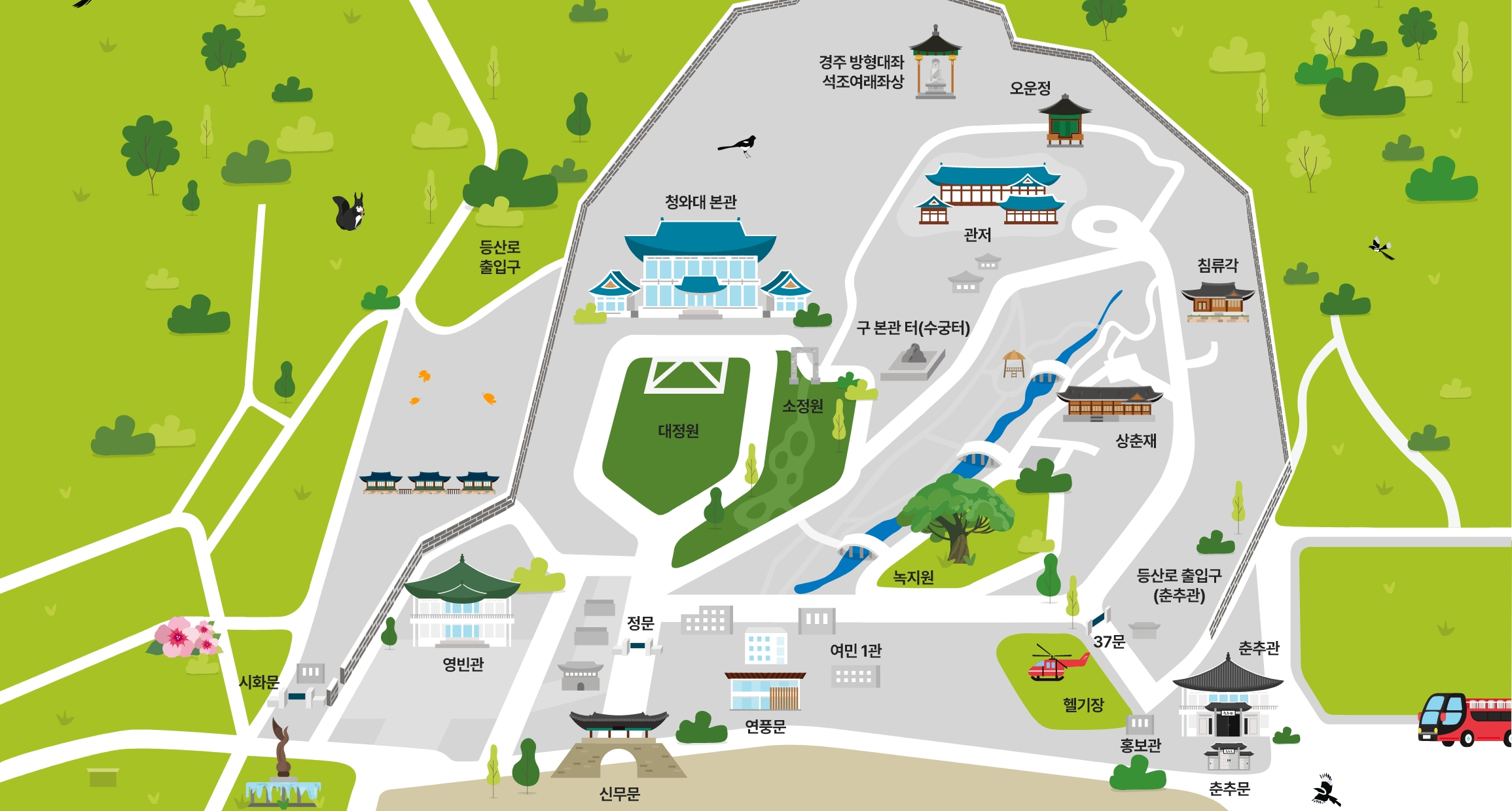 | 해설코스 | 녹지원, 상춘재, 구 본관 터, 본관, 영빈관 |